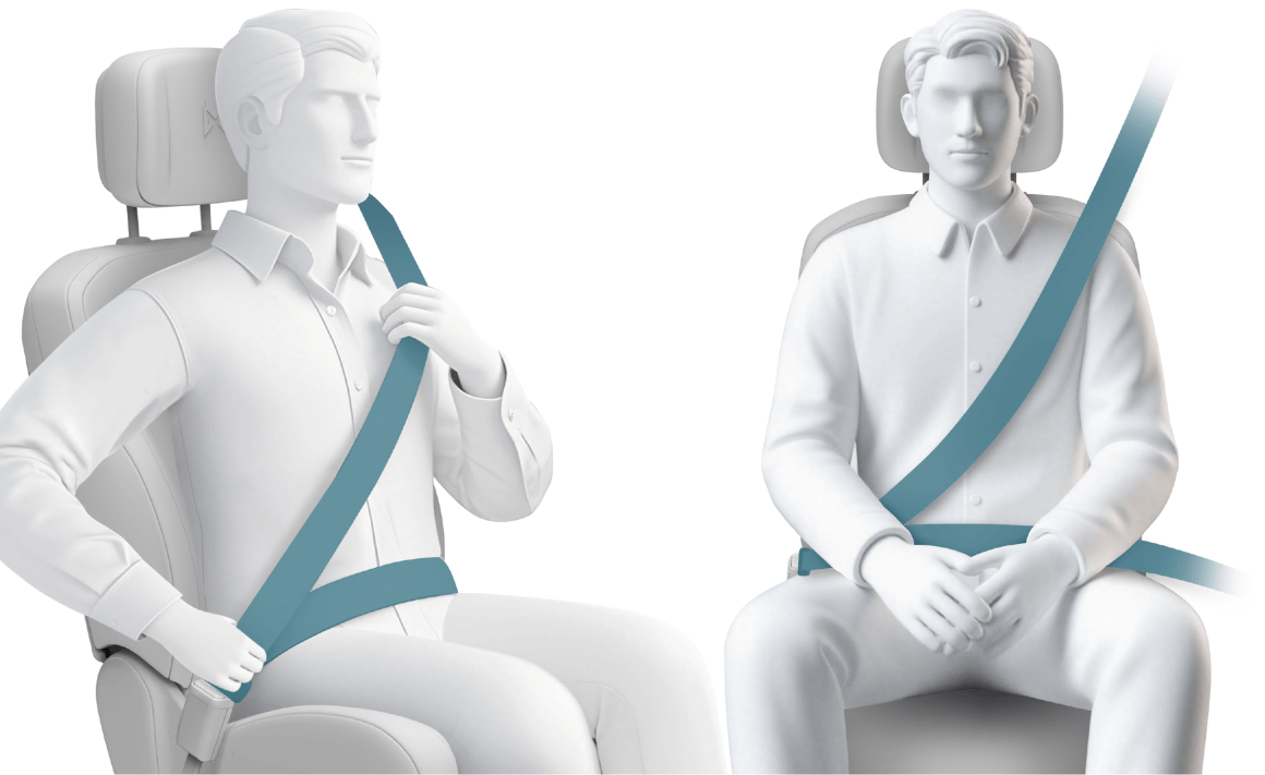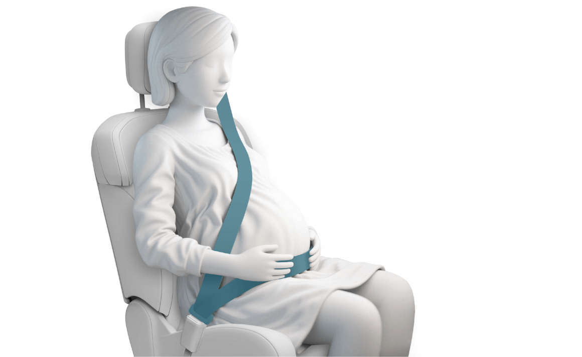 孕妇佩戴安全带时,请将肩部织带均匀地通过胸部,让腰部织带尽可能低地横跨髋部,保持安全带平展紧贴,请勿将安全带置于腹部。