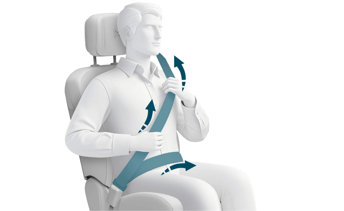 前排安全带装备有预张紧及限力装置,发生正向、侧向撞击时,能显著提高对驾乘人员的保护性能。根据撞击强度,预张紧装置触发后,会立即拉紧安全带,限力装置可缓解安全带对乘客胸部的压力,增强保护功能。