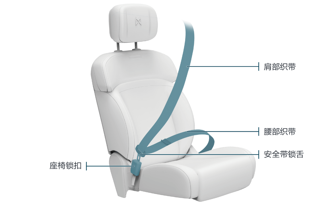 当车辆紧急制动或发生碰撞时,安全带可以将驾乘人员约束在座椅上,防止驾乘人员和车内其它部件发生二次碰撞,同时使驾乘人员得到气囊的有效保护。