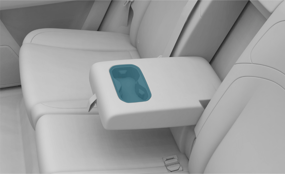 翻转后排座椅中央扶手到最低位置,可放置水杯或饮料瓶。