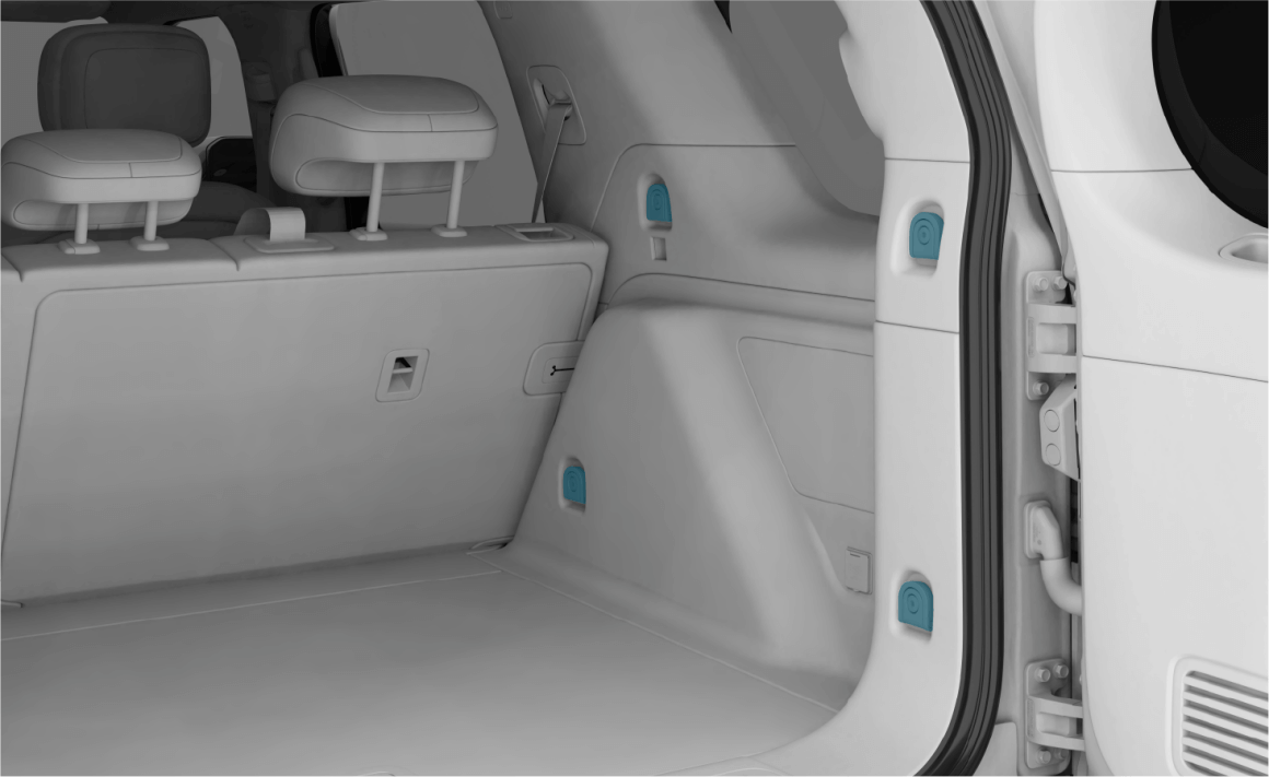左右两侧的固定环,可用于捆扎、固定放置在后备箱内的较大物品。