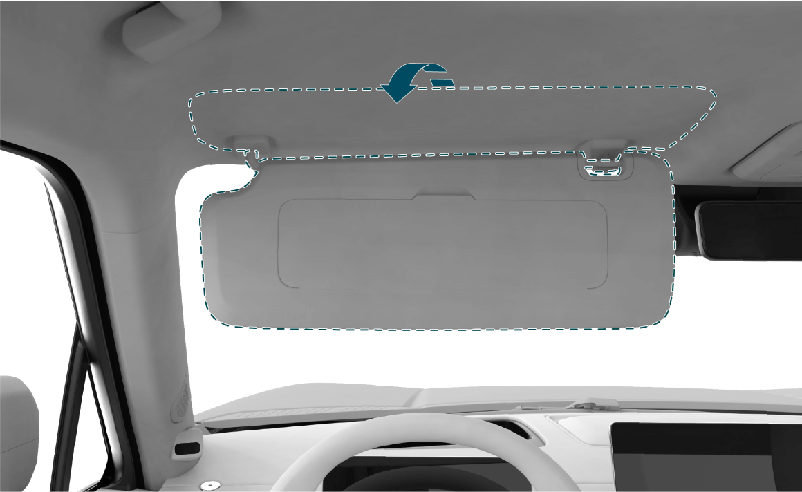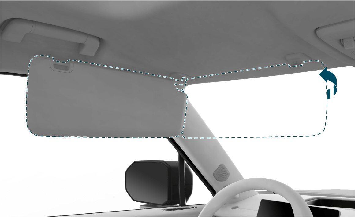 驾驶车辆时,如需将遮阳板转至侧面,请您将车辆停稳后再进行操作。