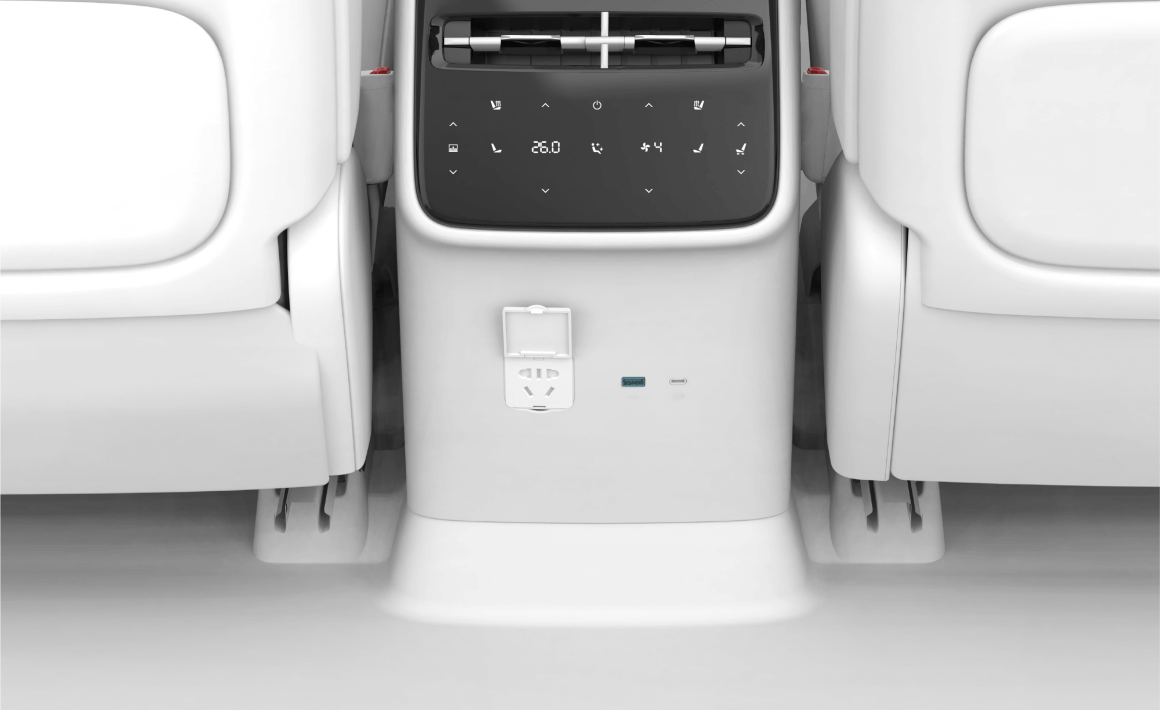 后排充电接口位于中央扶手后端下方,有 USB 和 Type-C 两个接口。