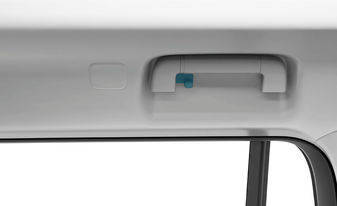 衣帽钩位于后排顶棚两侧拉手处,可用于钩挂轻柔的衣帽等物品。