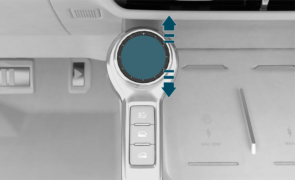 上、下滑动驾驶模式切换旋钮圆形显示屏可切换表盘主题。