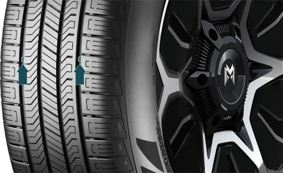胎面磨损标记用于指示轮胎胎面花纹磨损情况。如果胎面花纹磨损到标记位置,轮胎将无法继续使用,必须及时更换。
