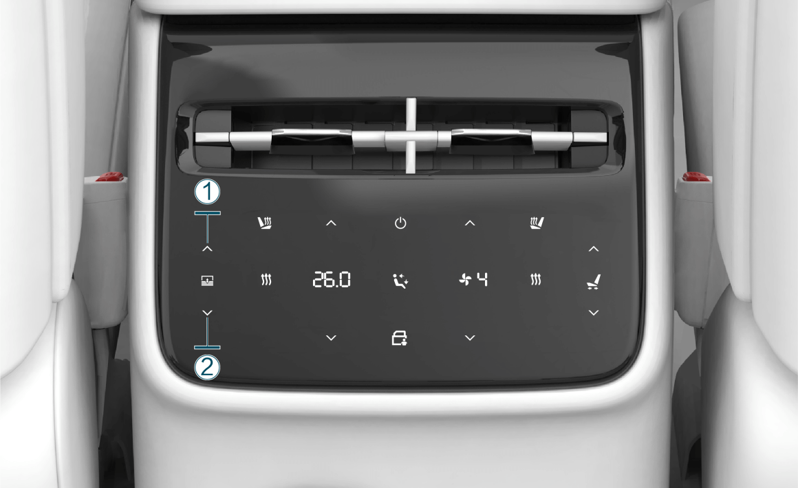 在后排控制屏上点触遮阳帘控制按键,可开启 / 关闭遮阳帘。