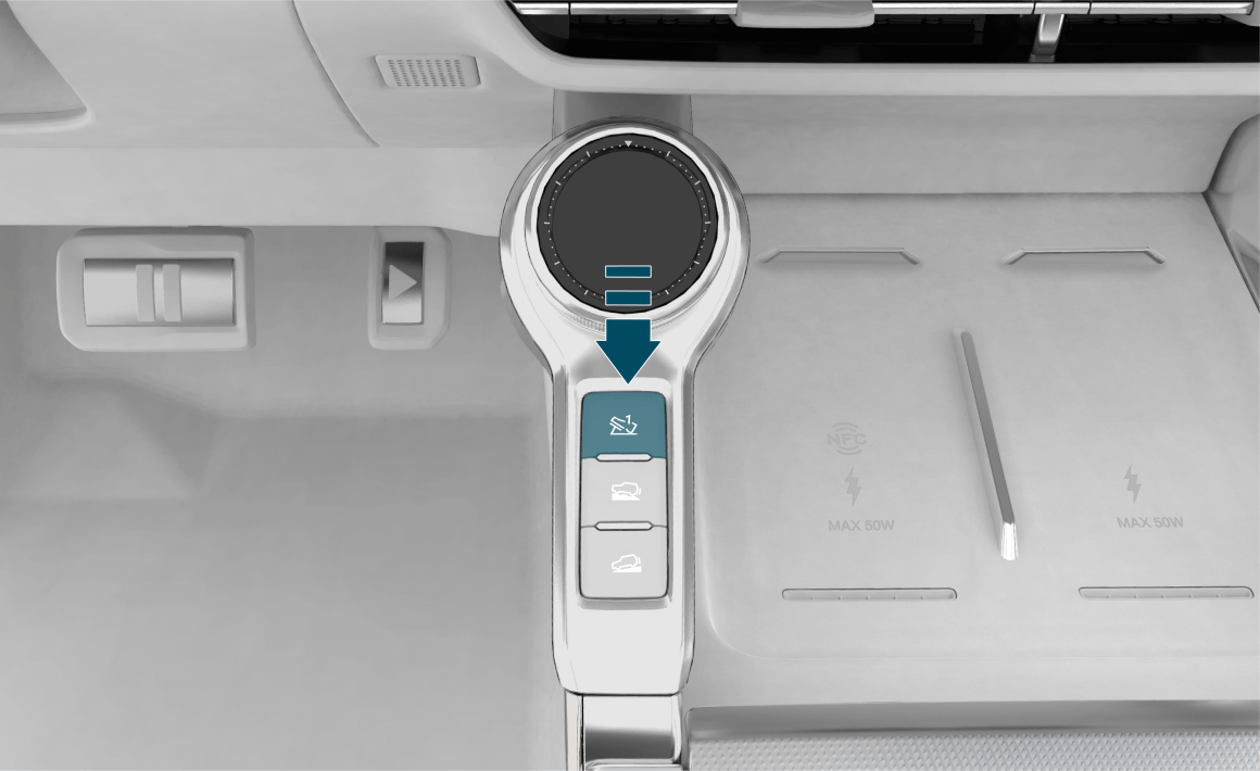 旋动位于中控屏下方的驾驶模式切换旋钮切换驾驶模式。旋钮旋转第一下解锁驾驶模式系统,进入驾驶模式切换状态,开关显示屏显示当前驾驶模式页面,旋转第二下切换驾驶模式。