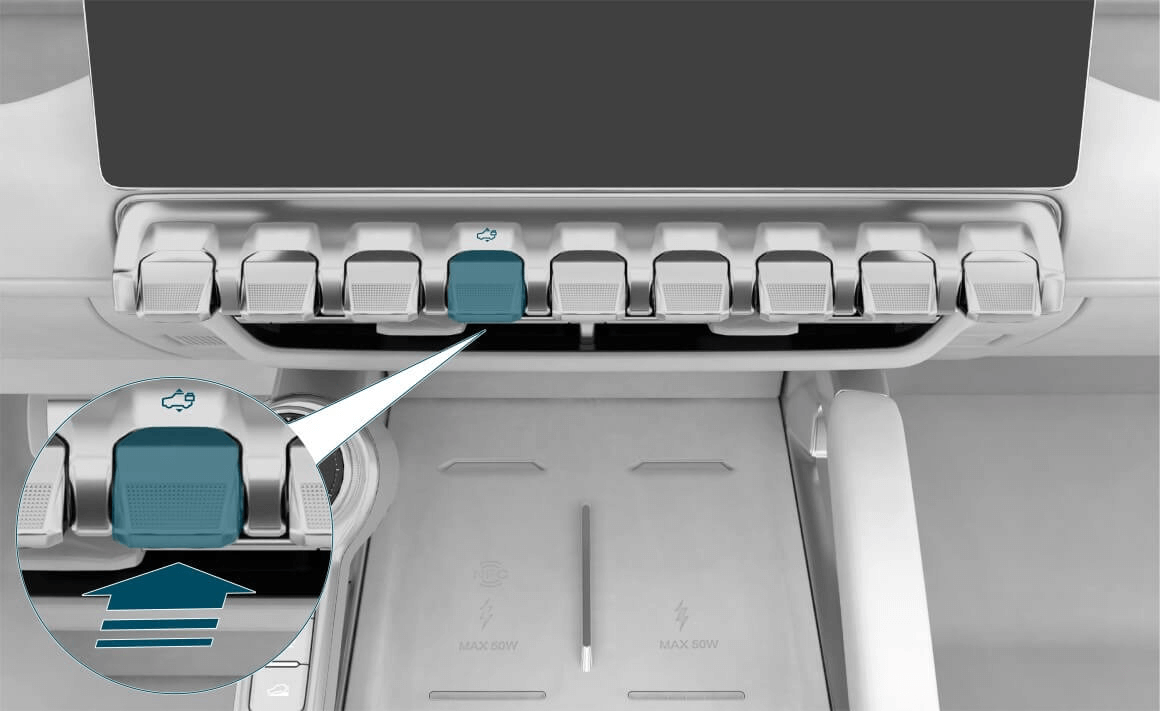 在地库模式下,悬架高度自动调节到最低位置(- 45 mm),在进入地下车库等限高或复杂路况时,避免碰撞顶部障碍物。