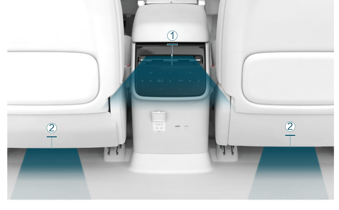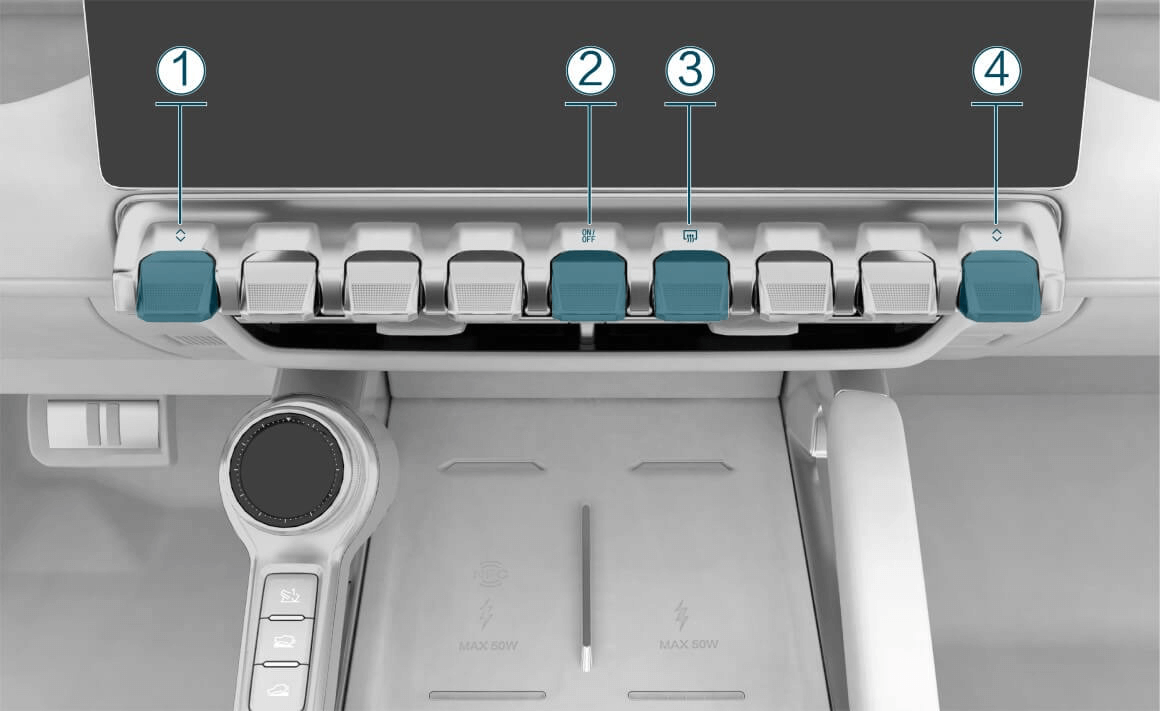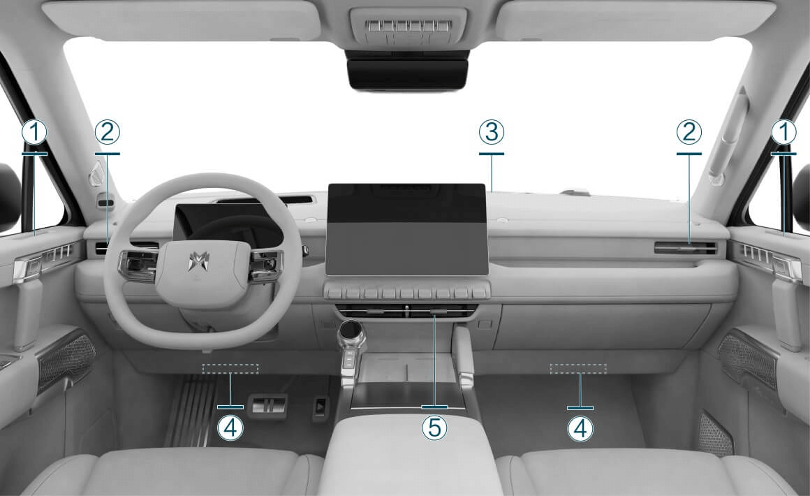 | ⑧ | 吹风模式 | 前排模式调节,可选择吹面模式、吹脚模式、吹窗模式自由组合。 |