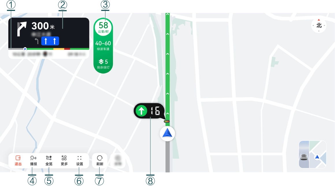 | ④ | 导航播报 | 点触开启或关闭导航播报。 |