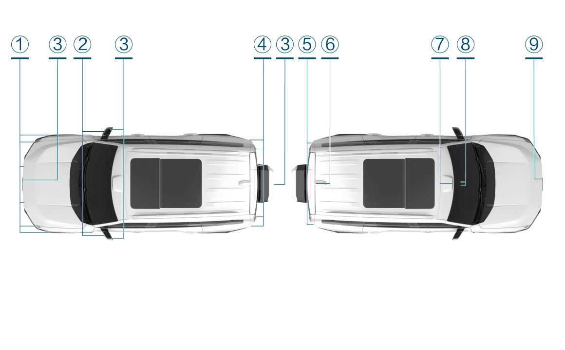 - 如果需要更换前挡风玻璃、翼子板、外后视镜、保险杠或后尾门,请联系猛士体验中心,以确保妥善处理雷达和摄像头。