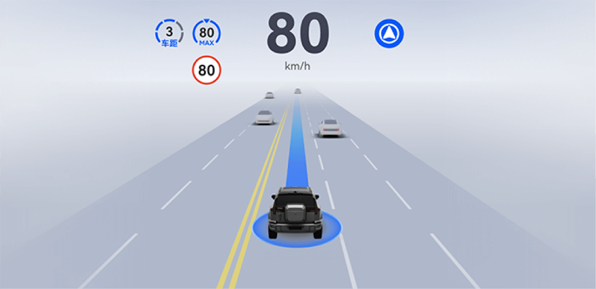 - 辅助调节车速:遇到周边车辆速度明显高于道路限速的场景时,自车会根据周边车辆的速度辅助调节自车车速,以保持与周边车辆相近的车速行驶。