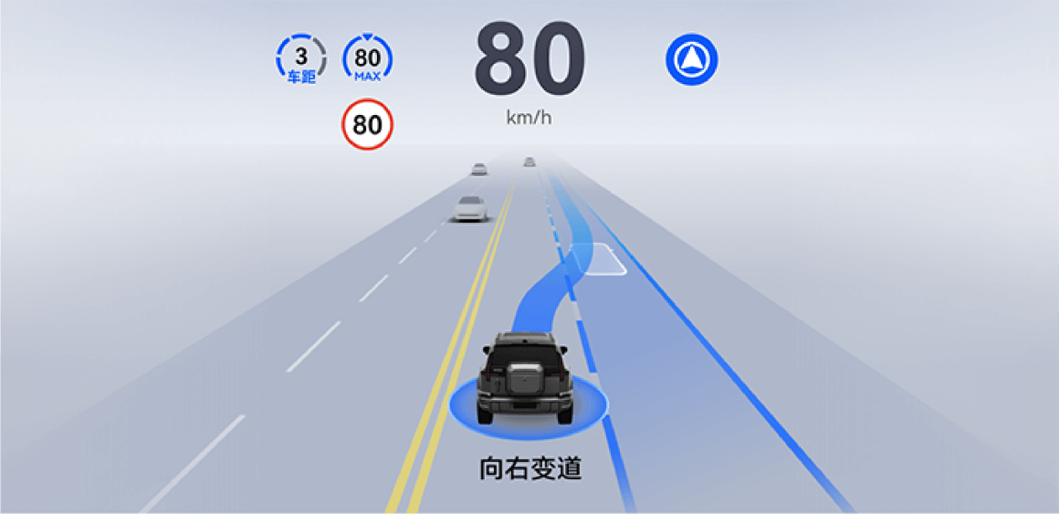 - 车辆在大雨或暴雨等天气高速行驶时,系统会控制车辆尽量不超车换道,从而降低碰撞风险。