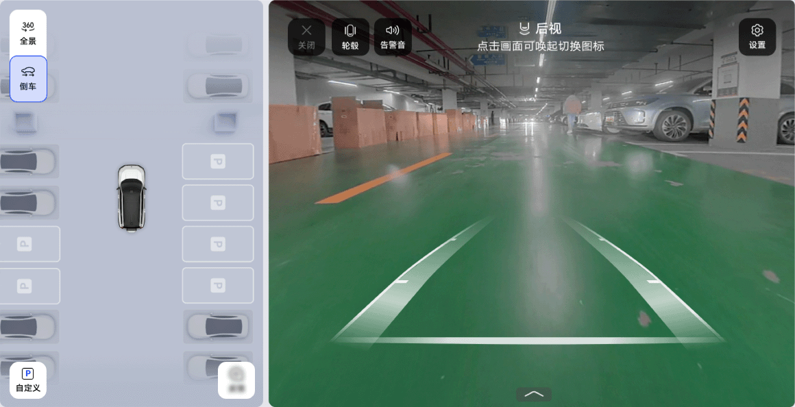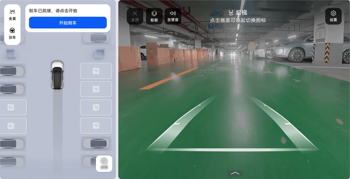 - − 挂 R 挡(请确认中控屏的“设置 >> 辅助驾驶 >> 全景环视”已设置了挂 R 挡默认打开“泊车辅助”)。